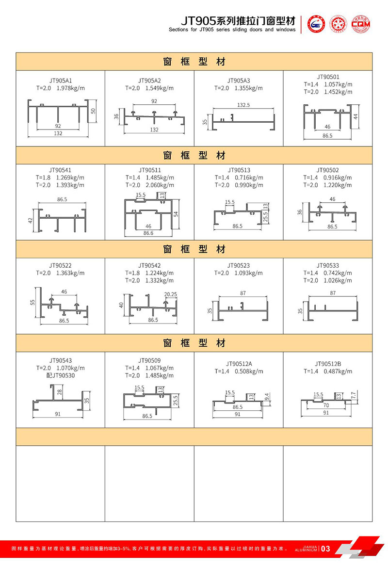 鋁型材規(guī)格型號:JT905 一