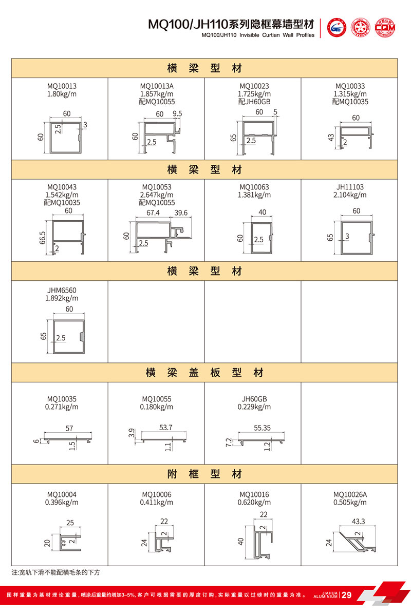 鋁型材規(guī)格型號(hào):MQ100/JH110 B