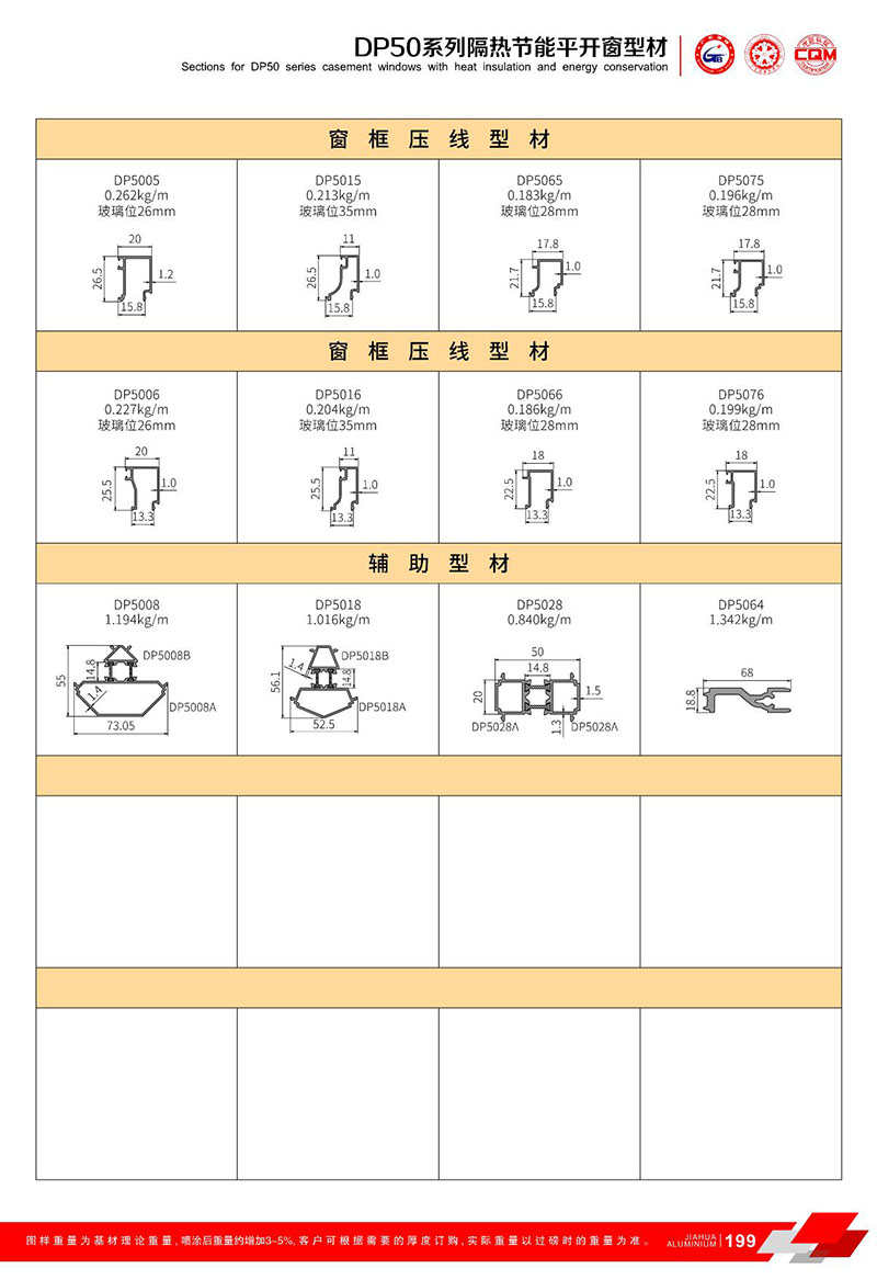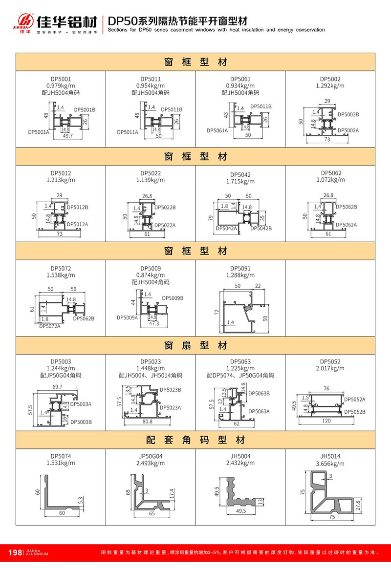 鋁型材規(guī)格型號(hào):DP50平開(kāi)系列 A