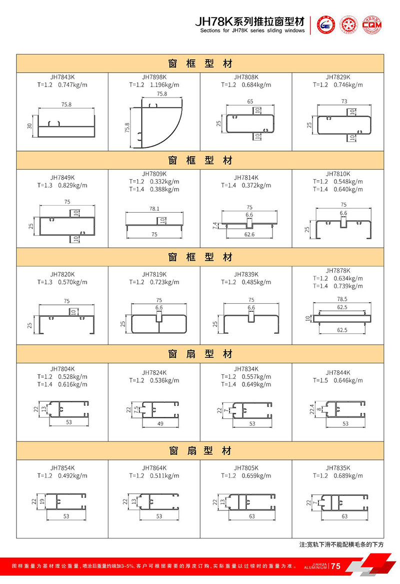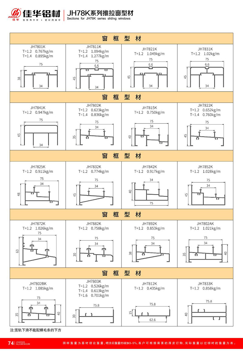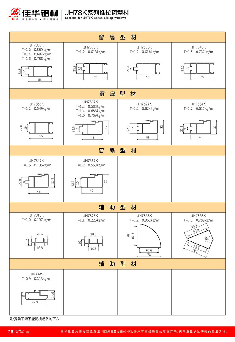 鋁型材規(guī)格型號:JH78K